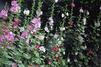 梅雨の時期には、湿気が多くてじとじとしますが、立葵の花の勢いは種類の多い紫陽花(あじさい)のみずみずしい花とともに、見る者に元気を与えてくれます。